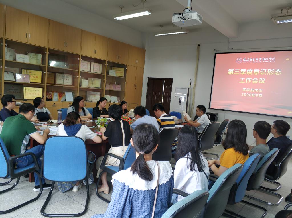 9月24日,醫(yī)學(xué)技術(shù)系在系部301會(huì)議室召開(kāi)2020年第三季度意識(shí)形態(tài)工作會(huì)議。醫(yī)學(xué)技術(shù)系領(lǐng)導(dǎo)班子、黨總支委員、各黨支部書(shū)記、教研室主任、實(shí)訓(xùn)中心主任、團(tuán)總支書(shū)記、系部人員、輔導(dǎo)員等參加了此次會(huì)議,會(huì)議由醫(yī)學(xué)技術(shù)系黨總支書(shū)記陳俊穎主持。