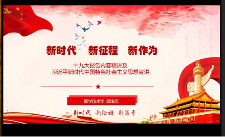 6月9日中午,醫(yī)學(xué)技術(shù)系第十八期業(yè)余分黨校培訓(xùn)班第一課由醫(yī)學(xué)技術(shù)系黨總支負(fù)責(zé)人邱滾忠開講。此次課程主要圍繞學(xué)習(xí)十九大報(bào)告、貫徹新時(shí)代新思想新要求展開。他強(qiáng)調(diào),在深入解讀學(xué)習(xí)十九大報(bào)告和新時(shí)代新要求后,希望學(xué)員們能夠明確自己的奮斗目標(biāo),提高自身素質(zhì),向新時(shí)代奮進(jìn)!