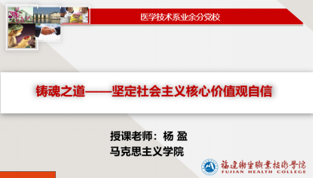 6月15日,醫(yī)學(xué)技術(shù)系第十八期業(yè)余分黨校培訓(xùn)班第六課開講,馬克思主義學(xué)院楊盈老師擔(dān)任此次課程的主講人。本次課程的主題是“鑄魂之道——堅(jiān)定社會主義核心價(jià)值觀自信”。她從“價(jià)值”切入,為學(xué)員們講解了何為“社會主義核心價(jià)值觀”,從國內(nèi)和國際兩個(gè)層面為大家闡述分析了為什么要培育和踐行社會主義核心價(jià)值觀。她號召大家要堅(jiān)定價(jià)值觀自信,爭做社會主義核心價(jià)值觀模范踐行者。