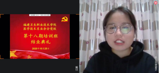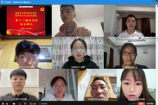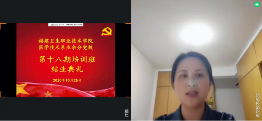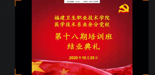 10 25 日,醫(yī)學(xué)技術(shù)系舉行第十八期業(yè)余分黨校培訓(xùn)班結(jié)業(yè)儀式。本次結(jié)業(yè)儀式通過(guò)網(wǎng)絡(luò)平臺(tái)線上開(kāi)展,醫(yī)學(xué)技術(shù)系黨總支書(shū)記 陳俊穎 ,第一黨支部書(shū)記彭臻菲、第二黨支部書(shū)記鐘偉雄、學(xué)生黨支部書(shū)記曾慶才,以及 96 名學(xué)員共同參加本次結(jié)業(yè)儀式。本次結(jié)業(yè)儀式由 18 檢驗(yàn) 302 班江鵬同學(xué)主持。