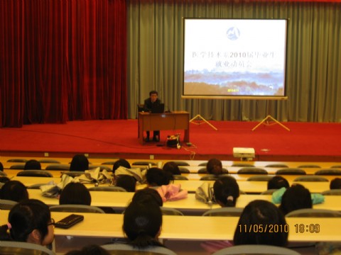 為了做好就業(yè)工作,醫(yī)學技術(shù)系于2010年5月11日在學術(shù)報告廳召開了2010屆畢業(yè)生就業(yè)動員會。系黨總支洪聿榮副書記、5位畢業(yè)班班主任和全體應(yīng)屆畢業(yè)生參加了本次大會。