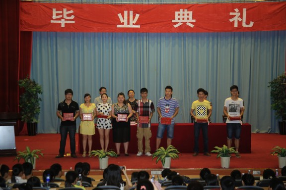 畢業(yè)典禮在莊嚴(yán)而又雄壯的國(guó)歌聲中開始,首先由教務(wù)處實(shí)踐管理科倪捷科長(zhǎng)宣讀畢業(yè)生名單,隨后學(xué)工處黃銘珊處長(zhǎng)宣讀優(yōu)秀畢業(yè)生(5人)名單。院、系領(lǐng)導(dǎo)為畢業(yè)生代表和優(yōu)秀畢業(yè)生頒發(fā)證書。接著由雷娟娟老師領(lǐng)誓,全體畢業(yè)生莊嚴(yán)地宣讀了醫(yī)學(xué)生誓詞。