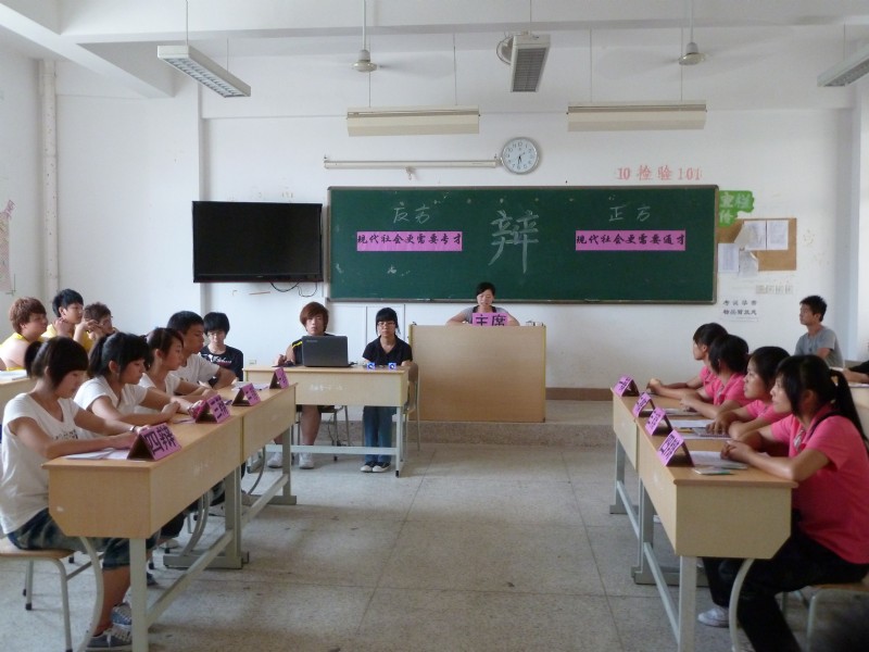 醫(yī)學(xué)技術(shù)系第四屆大專生辯論賽半決賽的兩場(chǎng)賽事分別于5月10日、11日下午5點(diǎn)30分在教學(xué)樓205教室激烈開辯。本次比賽采用國際大專生辯論賽賽制,增設(shè)了攻辯階段,使整場(chǎng)比賽更具看點(diǎn)。第一場(chǎng)辯論題目:現(xiàn)代社會(huì)更需要通才還是專才?對(duì)陣的正反方分別為10檢驗(yàn)301和10影像301(一隊(duì))代表隊(duì)。第二場(chǎng)辯論題目:大學(xué)生寬松管理利大于弊還是弊大于利?正反方分別為10影像301(二隊(duì))和09檢驗(yàn)301代表隊(duì)。