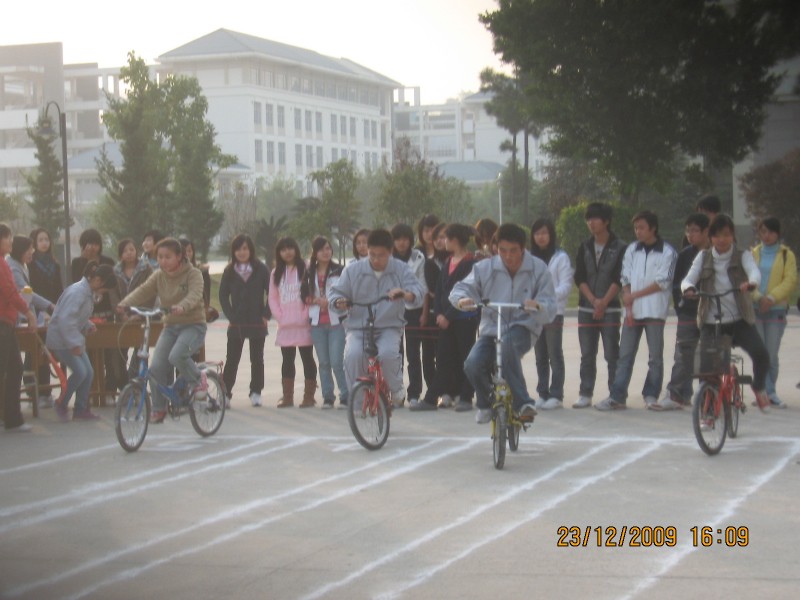 為更好地宣傳“我運(yùn)動(dòng),我健康;我快樂,我陽(yáng)光?!边@一主題,醫(yī)學(xué)技術(shù)系于2009年12月24日在第一食堂門口舉行首屆自行車大賽。