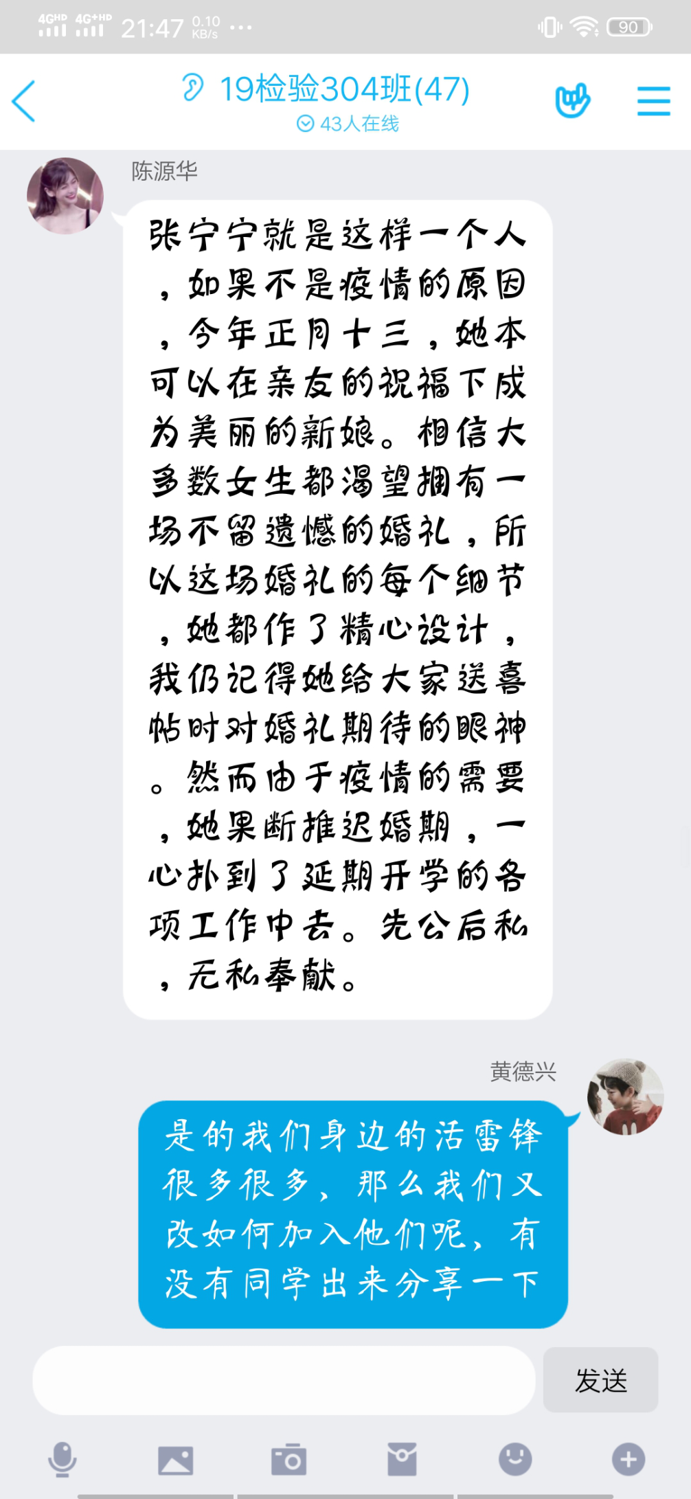 各班團(tuán)支書組織團(tuán)員觀看雷鋒的生平事跡,雷鋒語錄,朗誦贊揚雷鋒的詩歌。同學(xué)們在學(xué)習(xí)的過程中加深和鞏固了心中對雷鋒的認(rèn)知;疫情當(dāng)前,每個同學(xué)都認(rèn)真看待,積極應(yīng)對,并表達(dá)對一線醫(yī)務(wù)人員的關(guān)心和祝福。同學(xué)們表示,每個人嚴(yán)以律己,我們終將勝利。此次抗擊疫情中,不少同學(xué)主動請纓參與志愿者工作,體現(xiàn)了一名大學(xué)生和青年志愿者的情懷。學(xué)習(xí)雷鋒精神讓同學(xué)們知道了如何實現(xiàn)自身價值,為打贏疫情防控阻擊戰(zhàn)貢獻(xiàn)自己的力量,發(fā)揮青年力量,擔(dān)起時代重任。