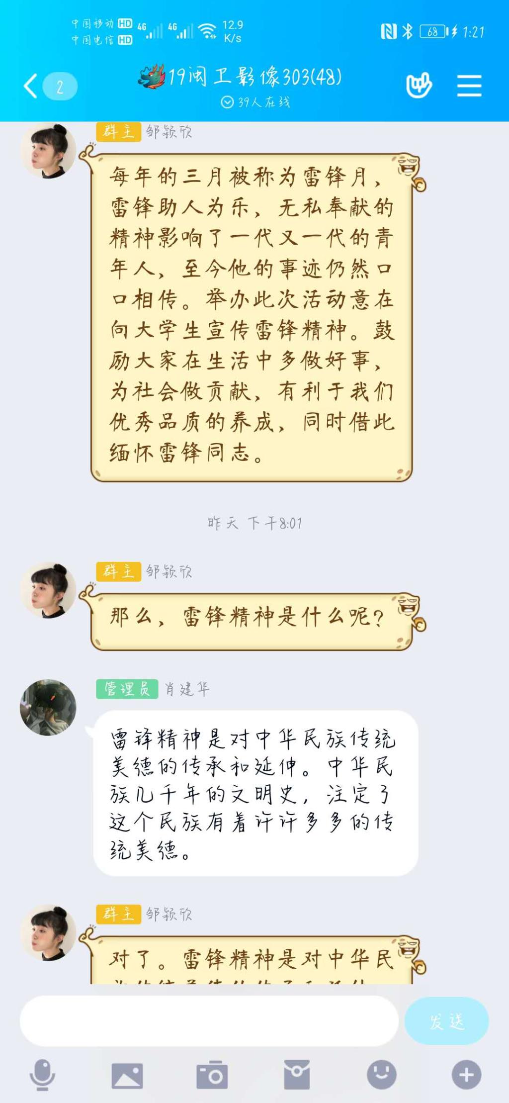 202035日,中國迎來了第57個雷鋒日,同時也是第21個中國青年志愿者服務(wù)日。我系團(tuán)總支于33日組織各級團(tuán)支部以“學(xué)雷鋒精神,念時代楷?!睘橹黝}在線上開展特別團(tuán)日活動。此次活動的舉辦,讓我們看到學(xué)生的傳承精神、愛國精神、集體主義精神,更有濃濃的祝福。