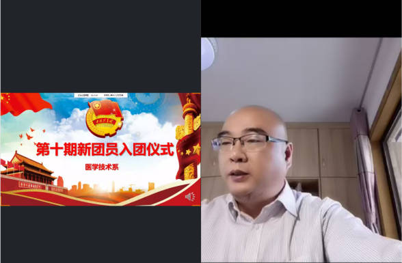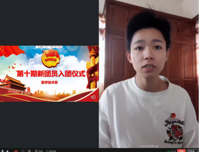系團總支副書記江鵬同學作為本次會議的主持人,醫(yī)學技術系黨總支負責人邱滾忠副書記、系團總支書記曾慶才老師、副書記陳念文老師及各班輔導員,醫(yī)學技術系團學干部及30名新團員出席線上入團儀式。