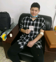 王俊杰同學(xué)說:“4月25日上午,我來到漳浦萬新廣場獻(xiàn)血車獻(xiàn)血,填表、體檢、獻(xiàn)血,在現(xiàn)場我和所有獻(xiàn)血者一起,用自身最寶貴的血液,讓告急的血庫充盈起來,我們之間相互都不認(rèn)識,但是現(xiàn)場每個人的內(nèi)心所想、所思都是一樣的,那就是國家有難匹夫有責(zé)。其實(shí)之前我就一直在堅(jiān)持獻(xiàn)血,疫情期間,能做一點(diǎn)自己力所能及的貢獻(xiàn),心里面更加踏實(shí)。和那些在抗疫一線的白衣天使比起來,這些都是微不足道。作為一名大學(xué)生我應(yīng)該做點(diǎn)力所能及的事,作為一名醫(yī)學(xué)院校的大學(xué)生響應(yīng)號召義不容辭。”