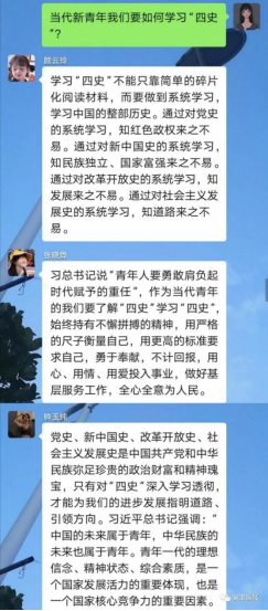 我系各班級(jí)團(tuán)支部通過(guò)網(wǎng)絡(luò)平臺(tái)開(kāi)展了“學(xué)習(xí)四史”主題團(tuán)日活動(dòng)。