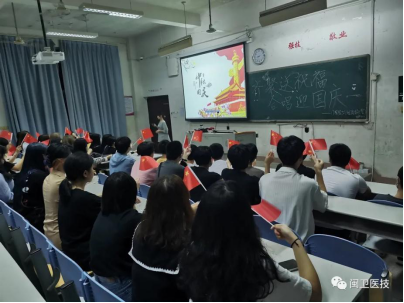 首先,團學干部們合唱《我和我的祖國》,向祖國表達深情熱愛之心,為中華人民共和國成立71周年獻禮。并通過在黑板上留言,抒發(fā)了愛國情感。