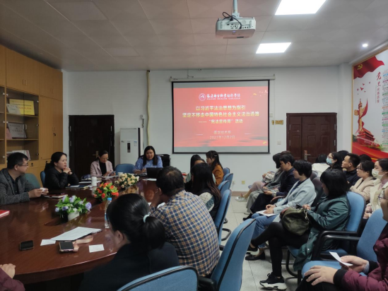 122日周四下午利用系部例會(huì),組織開(kāi)展一次集體學(xué)習(xí)憲法專題活動(dòng),并積極組織廣大教職工深入學(xué)習(xí)憲法法律,弘揚(yáng)憲法精神,讓法治精神和愛(ài)國(guó)主義精神在教職工心中牢牢扎根。