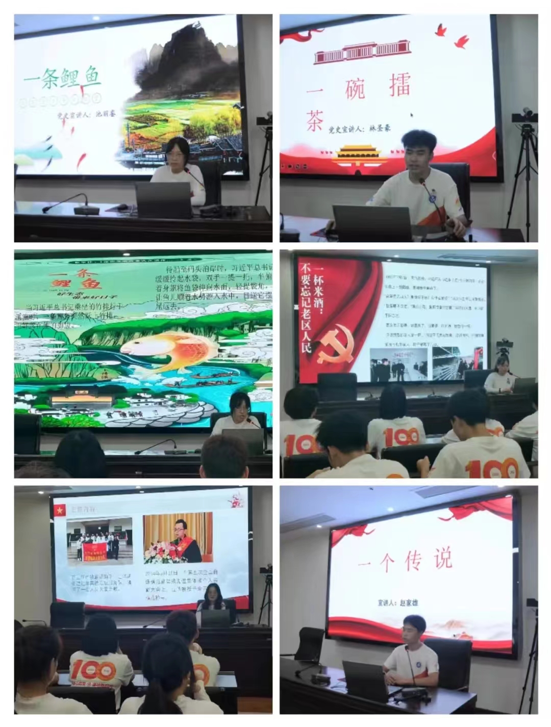 林圣豪、池麗鑾、黃思怡、陳蘇、趙家雄五位入黨積極分子生動地講述了習(xí)近平總書記的三明故事《一碗擂茶》、《一條錦鯉》、《一杯米酒》、《一段歌聲》和《一個(gè)傳說》。同學(xué)們深刻體會到習(xí)近平總書記多次深入三明調(diào)研的重要意義,以及對三明人民的親切關(guān)懷。