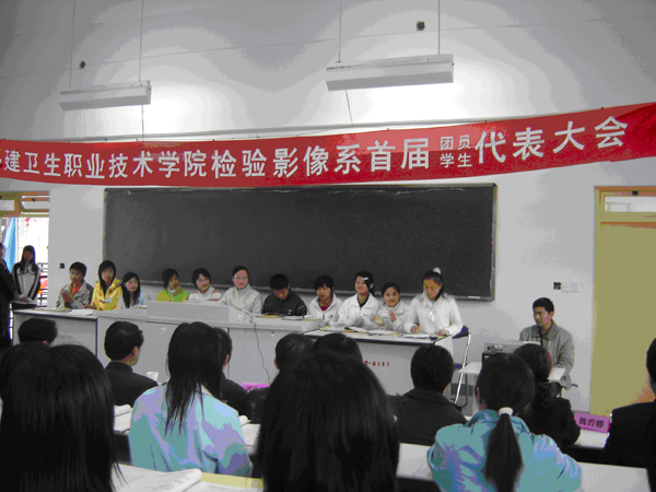 2006年3月21日下午3:00,檢驗(yàn)影像系第二階梯教室內(nèi)掌聲雷動(dòng),喜氣洋洋。共青團(tuán)檢驗(yàn)影像系首屆團(tuán)員代表大會(huì)、檢驗(yàn)影像系首屆學(xué)生代表大會(huì)開(kāi)幕式在這里舉行,完成了檢驗(yàn)影像系團(tuán)總支、學(xué)生會(huì)的組建工作。院領(lǐng)導(dǎo)廖偉堅(jiān)副院長(zhǎng)、教務(wù)處林復(fù)生副處長(zhǎng)、學(xué)工處黃銘珊副處長(zhǎng)、醫(yī)學(xué)基礎(chǔ)部蘇愛(ài)華書記、護(hù)理系學(xué)生代表、系領(lǐng)導(dǎo)馬少寧主任、蘭寶金書記、郭禮堅(jiān)副主任、辦公室秘書吳星祿老師、臨檢生化教研室魏碧娜主任、微寄教研室鄭韻芳主任、物理影像教研室曹家龍主任出席了開(kāi)幕式。