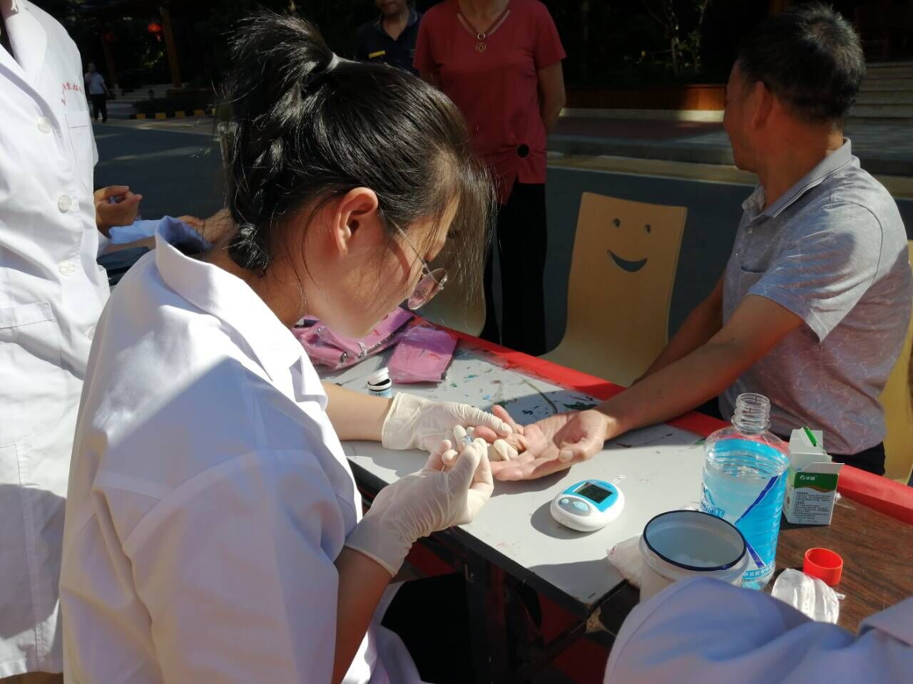 本次活動(dòng)吸引了約80位社區(qū)居民的積極參與。黨員教師向社區(qū)居民們認(rèn)真講解了高血脂防治知識(shí)和獻(xiàn)血的各種益處,讓居民們充分認(rèn)識(shí)到獻(xiàn)血不但有益身心健康,還能為社會(huì)做貢獻(xiàn)。與此同時(shí),同學(xué)們熱情而專業(yè)地為居民們測(cè)血型、量血壓,并囑咐高血壓的居民們應(yīng)該注意的事項(xiàng)。世茂小區(qū)居民為老師、同學(xué)們的專業(yè)解答、周到服務(wù)表示贊許。