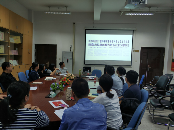 視頻學習后,與會人員還就本次學習內容開展討論交流,進一步提升學習效果。大家認為黨的十九屆四中全會通過的《決定》準確把握我國國家制度和國家治理體系的演進方向和規(guī)律,既闡明了必須牢牢堅持的重大制度和原則,又部署了推進制度建設的重大任務和舉措,必將把我國制度優(yōu)勢更好轉化為國家治理效能。大家表示要進一步堅定中國特色社會主義制度自信,并切實強化制度意識,帶頭維護制度權威,做制度執(zhí)行的表率。