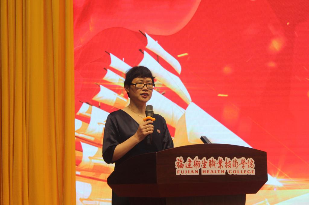 19檢驗(yàn)303班鄭靜同學(xué)作為畢業(yè)生代表發(fā)言,她深情回憶了在閩衛(wèi)院的美好時(shí)光,抒發(fā)了對母校和恩師的感恩和不舍,表達(dá)了醫(yī)技學(xué)子奔赴一線基層,以實(shí)干奮斗服務(wù)健康中國的豪情壯志。