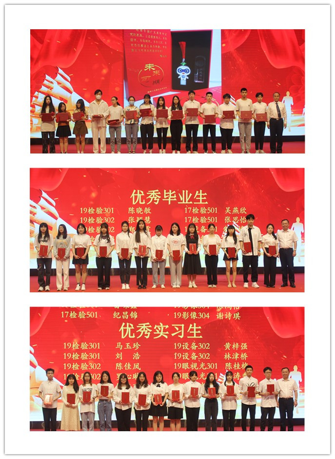 許能鋒校長為畢業(yè)生代表頒發(fā)畢業(yè)證書和畢業(yè)紀(jì)念。曾武祈書記為優(yōu)秀畢業(yè)生、優(yōu)秀實(shí)習(xí)生頒發(fā)榮譽(yù)證書。