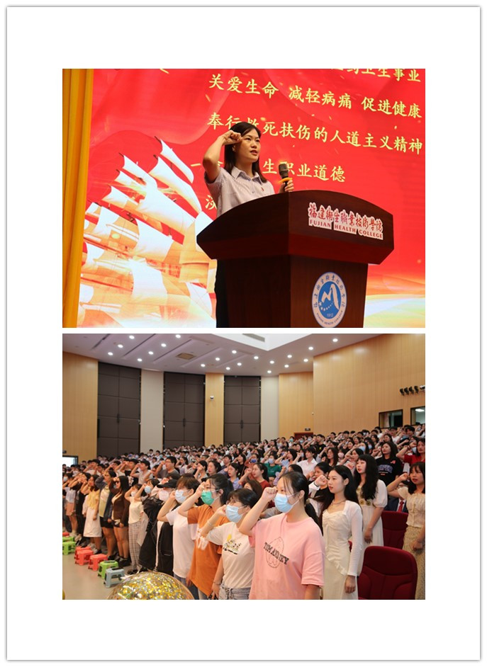 2020年福建省職業(yè)院校教師教學(xué)能力比賽一等獎獲得雷娟娟老師領(lǐng)誓下,全體畢業(yè)生莊嚴(yán)進(jìn)行畢業(yè)宣誓。“健康所系,性命相托……”一句句鏗鏘有力的誓詞,回蕩會場,激勵師生們不忘初心,砥礪前行。