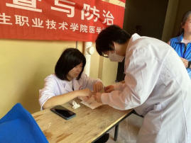 活動現(xiàn)場,醫(yī)學(xué)檢驗技術(shù)專業(yè)的師生們通過開展血型鑒定,發(fā)放無償獻(xiàn)血宣傳材料,普及了獻(xiàn)血的相關(guān)知識和無償獻(xiàn)血的重要意義,學(xué)生們在活動中強(qiáng)化了血液學(xué)知識的應(yīng)用,以行動提升對無償獻(xiàn)血的認(rèn)知。師生還為居民進(jìn)行血糖測定和乙肝表面抗原檢測,結(jié)合檢測結(jié)果,普及糖尿病和乙肝預(yù)防知識,養(yǎng)成健康生活習(xí)慣。