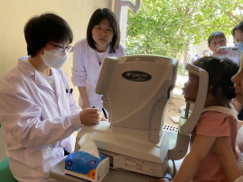 眼視光技術(shù)專業(yè)的師生們?yōu)樯鐓^(qū)青少年開展視力篩查,普及健康用眼知識,旨在激發(fā)學(xué)生對青少年近視的關(guān)注,減緩近視發(fā)展。