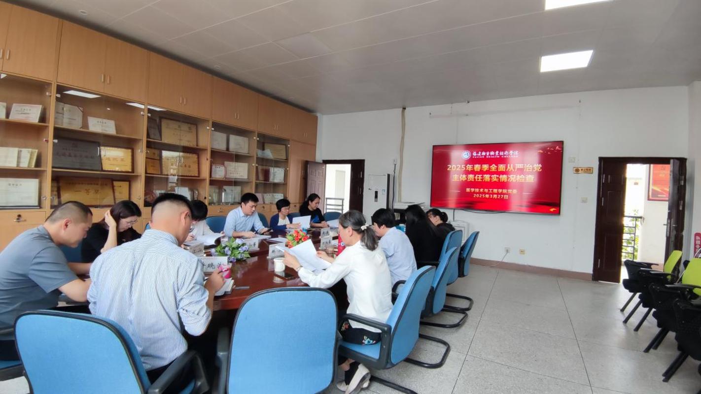 3月27日,校黨委委員、副校長(zhǎng)周雄率檢查組到醫(yī)學(xué)技術(shù)與工程學(xué)院,開展2025年春季全面從嚴(yán)治黨主體責(zé)任落實(shí)情況的檢查。