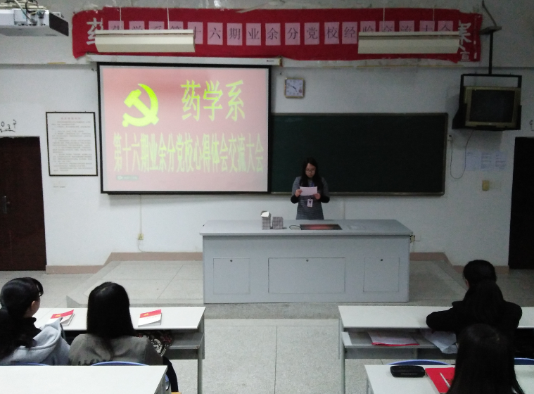 藥學(xué)系第十六期業(yè)余分黨校心得交流大會于20151224日在藥學(xué)系第二階梯教室召開,出席此次心得交流大會的有團總支書記李寶珠老師,輔導(dǎo)員蘇素嬌老師和陳翰老師。