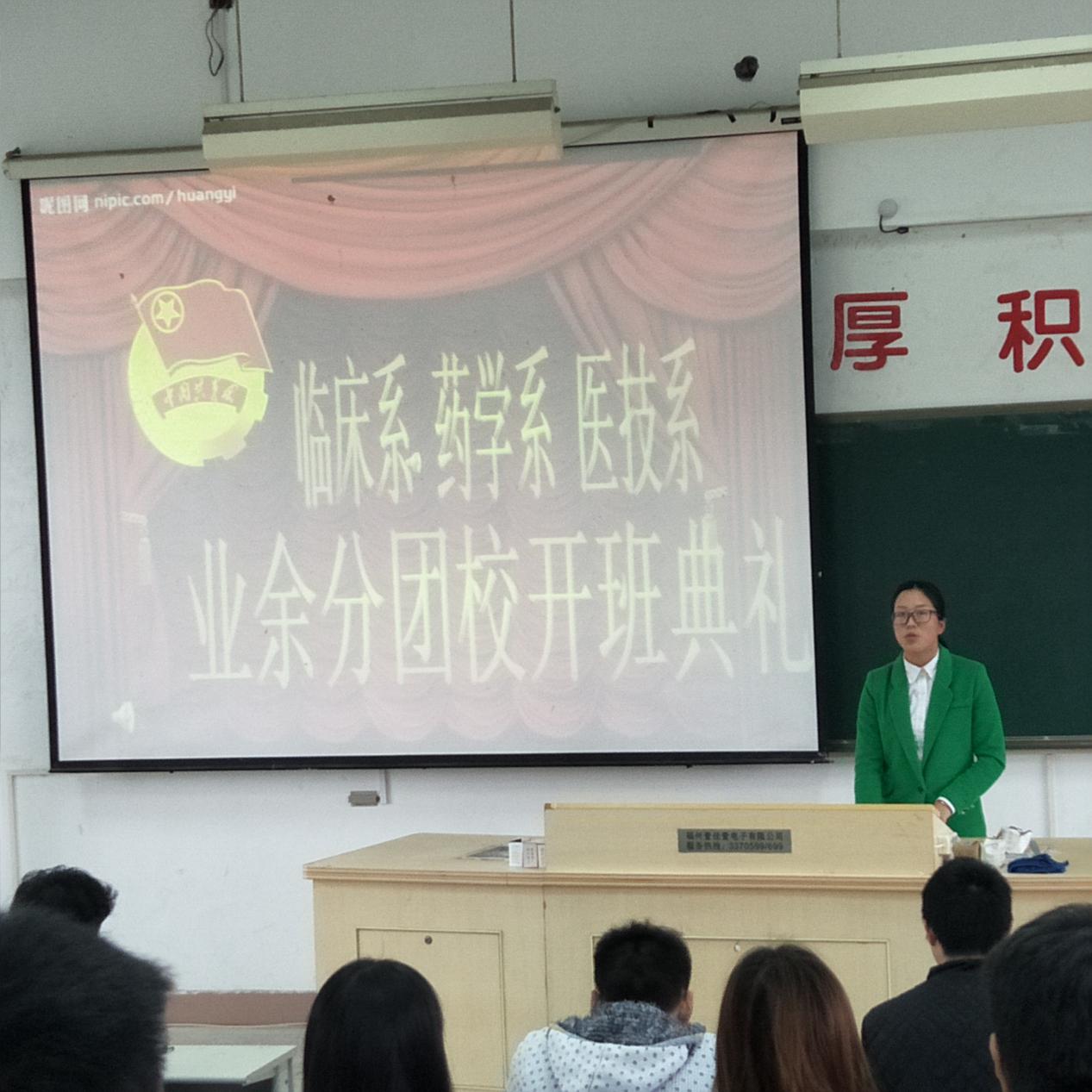本次開(kāi)班典禮共分為三個(gè)議程:首先全體人員起立,奏唱國(guó)歌;接著由臨床醫(yī)學(xué)系團(tuán)總支書(shū)記葉家濤上臺(tái)宣讀本期業(yè)余分團(tuán)校學(xué)員名單;最后,醫(yī)學(xué)技術(shù)系團(tuán)總支書(shū)記楊盈老師上臺(tái)發(fā)言,對(duì)本期團(tuán)校學(xué)員提出要求和期盼。她要求學(xué)員樹(shù)立正確的思想,切實(shí)行動(dòng);希望每一位同學(xué)都可以在本次團(tuán)?;顒?dòng)中收獲滿滿,早日成為一名合格的共青團(tuán)員。