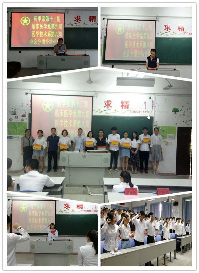 2018年5月2日,由藥學系、臨床系、醫(yī)學技術系聯(lián)辦的業(yè)余分團校結業(yè)典禮在臨床系一階隆重舉行。蒞臨本次大會的老師分別是系團總支書記黃嵩梅、副書記尹德愛、臨床醫(yī)學系團總支書記葉家濤、副書記謝林輝以及醫(yī)學技術系團總支書記黃玲云、副書記曾慶才。結業(yè)典禮由楊慶玲同學主持。