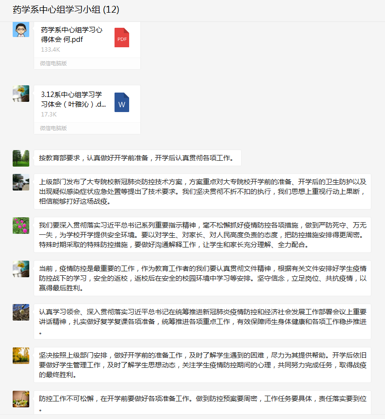 2020年312日,藥學(xué)系黨總支在微信群召開中心組學(xué)習(xí)(擴(kuò)大)會(huì)議,會(huì)議由藥學(xué)系黨總支書記鄭力宏主持。
