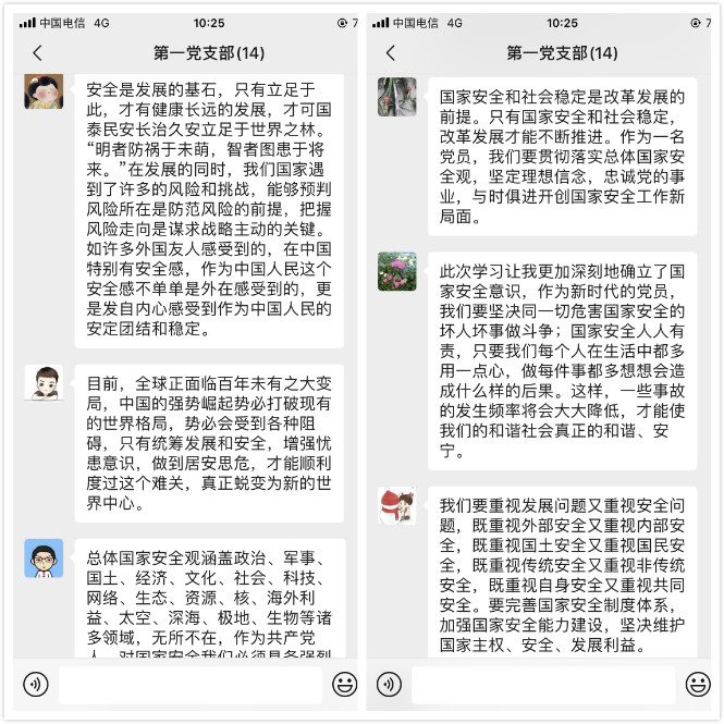 為切實(shí)加強(qiáng)國(guó)家安全意識(shí),4月11日,藥學(xué)系第一黨支部使用微信群在線學(xué)習(xí)國(guó)家安全教育主題學(xué)習(xí)活動(dòng),活動(dòng)由何舒瀾書記支持。