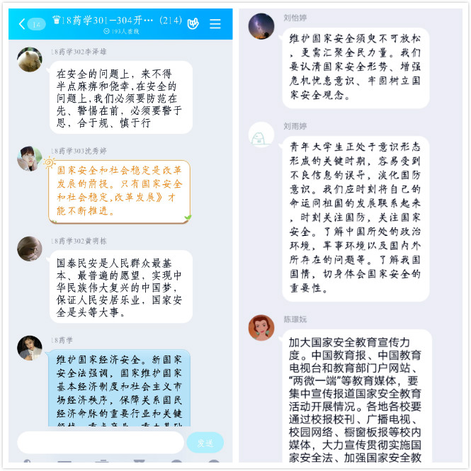 4月13日至14日,藥學(xué)系各班級(jí)通過QQ、釘釘?shù)染W(wǎng)絡(luò)平臺(tái),召開“國家安全教育日”主題班會(huì),1800余名學(xué)生以班級(jí)為單位集中學(xué)習(xí)國家安全教育相關(guān)內(nèi)容。主題班會(huì)上,輔導(dǎo)員們詳細(xì)闡述了憲法中有關(guān)國家安全的規(guī)定,并結(jié)合疫情防控的特殊時(shí)期,再次強(qiáng)調(diào)牢固樹立安全意識(shí)、切實(shí)維護(hù)好生命財(cái)產(chǎn)安全的重要意義。