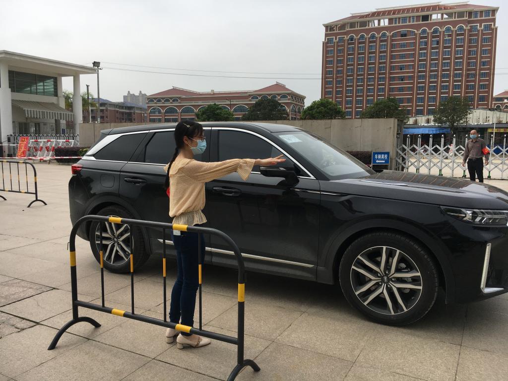 林偉玲老師引導(dǎo)車輛入校