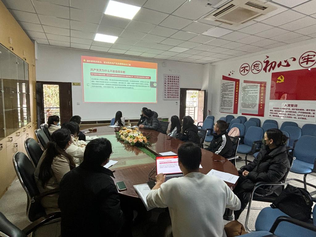 12月29日,藥學(xué)院學(xué)生第一黨支部書記鄭衛(wèi)敏在藥學(xué)院會議室開展題為《共產(chǎn)黨員不信教不涉黑涉惡》主題教育專題黨課,學(xué)生第一黨支部全體黨員參與。