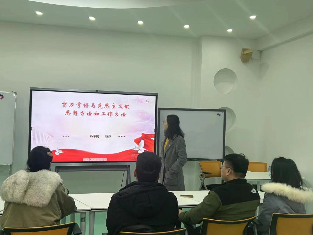 12月20日,藥學(xué)院學(xué)生第二黨支部書記胡丹以“努力掌握馬克思主義思想方法和工作方法”為專題為支部黨員上黨課。黨課以堅持實事求是、堅持戰(zhàn)略定力、堅持問題導(dǎo)向、堅持全面協(xié)調(diào)、堅持底線思維、堅持調(diào)查研究、堅持抓鐵有痕、堅持歷史擔(dān)當(dāng)?shù)劝藗€方面展開。胡丹強(qiáng)調(diào),作為高校教師黨員,在學(xué)習(xí)工作中我們要堅持“只有解放思想才能實事求是,只有實事求是才是解放思想”;要有“紛繁世事多元應(yīng),擊鼓催征穩(wěn)馭舟”的教學(xué)科研定力;在處理繁雜的工作上要學(xué)會抓大放小、以大兼小,以小帶大、小中見大,做好工作統(tǒng)籌;在學(xué)生管理工作中要首先深入開展調(diào)查研究;在支持學(xué)校建設(shè)上要有“功成不必在我,功成必定有我”的奉獻(xiàn)精神。