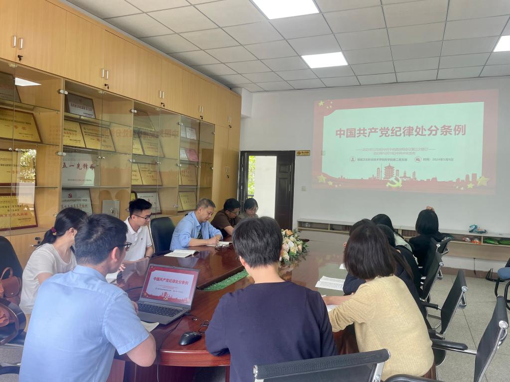 為深入開(kāi)展黨紀(jì)學(xué)習(xí)教育,引導(dǎo)支部黨員學(xué)紀(jì)、知紀(jì)、明紀(jì)、守紀(jì),進(jìn)一步強(qiáng)化紀(jì)律意識(shí)、加強(qiáng)自我約束,5月9日上午,藥學(xué)院第二黨支部在藥學(xué)院會(huì)議室開(kāi)展《中國(guó)共產(chǎn)黨紀(jì)律處分條例》(以下簡(jiǎn)稱(chēng)《條例》)的專(zhuān)題學(xué)習(xí)會(huì)。本次會(huì)議由黨支部書(shū)記劉丹丹主持,全體教師黨員積極參與。