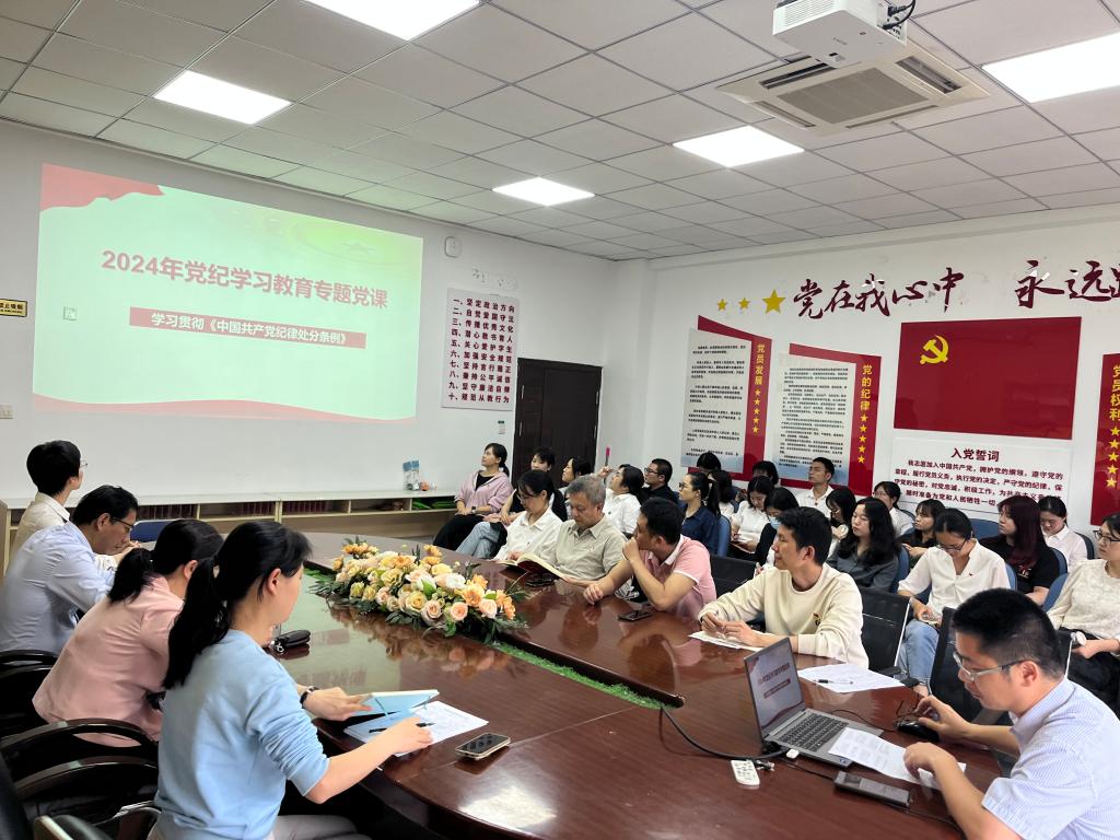 2024年5月23日,藥學(xué)院黨總支書記林穎峰為全體黨員講授以《學(xué)習(xí)貫徹<中國共產(chǎn)黨紀律處分條例>》為題的黨紀學(xué)習(xí)教育專題黨課,藥學(xué)院全體師生黨員到場聆聽。