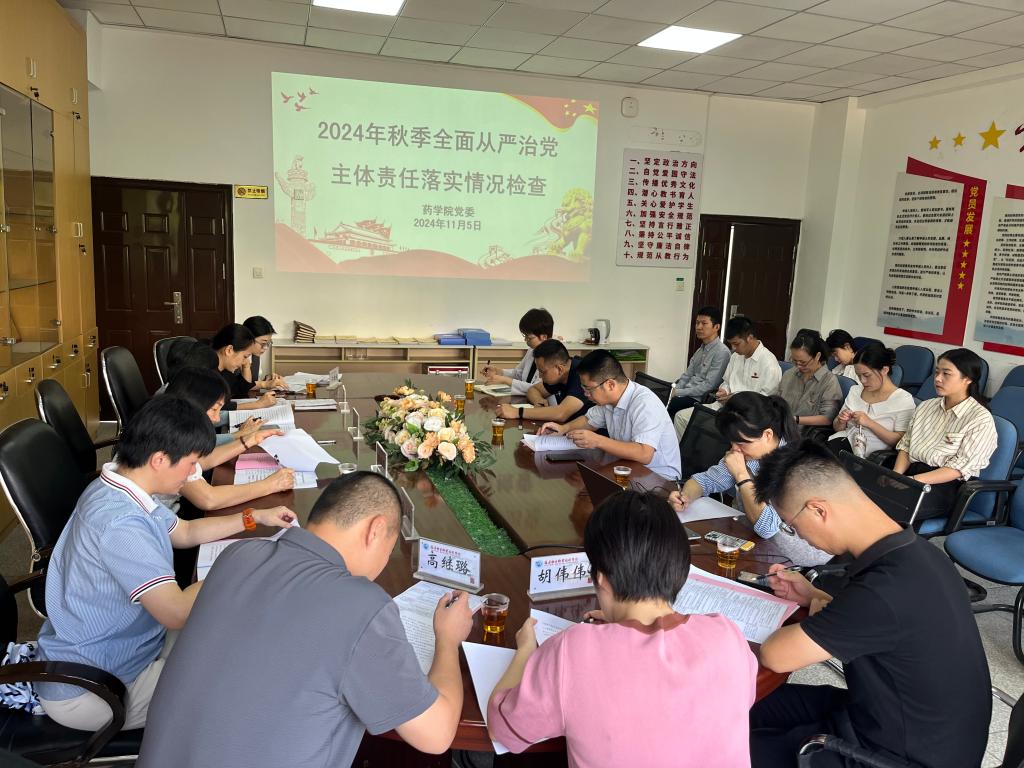 2024115日,藥學(xué)院黨委在會議室召開2024年秋季全面從嚴治黨主體責(zé)任落實情況檢查會。校黨委委員、黨委副書記李美華帶領(lǐng)第二檢查組成員到會指導(dǎo),藥學(xué)院黨委委員、各支部書記參加本次會議。