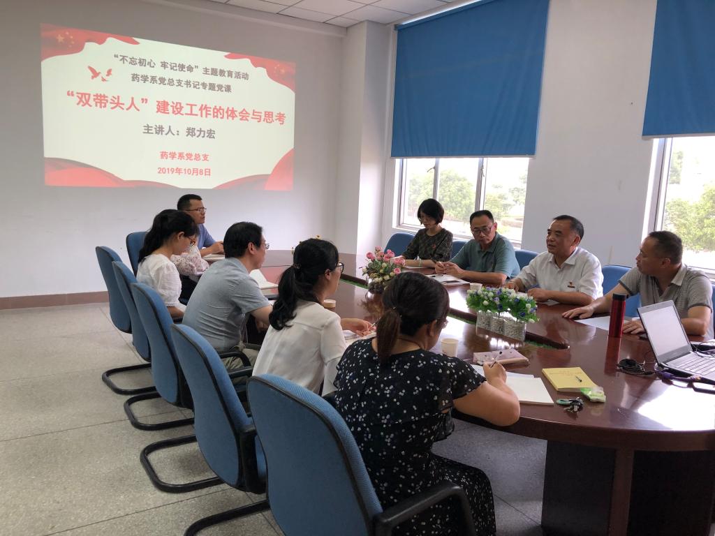 108日下午,藥學(xué)系黨總支在系部會議室開展 “‘雙帶頭人’建設(shè)工作的體會與思考”主題教育專題黨課。藥學(xué)系黨總支書記鄭力宏主講,學(xué)院第四巡回指導(dǎo)小組組長、紀(jì)委書記游鋒、護理系黨總支組織員許慧瓊、藥學(xué)系副主任肖健(主持工作)、黨總支副書記賴文金、副主任潘雪豐及總支支委、支部書記參加了本次黨課。