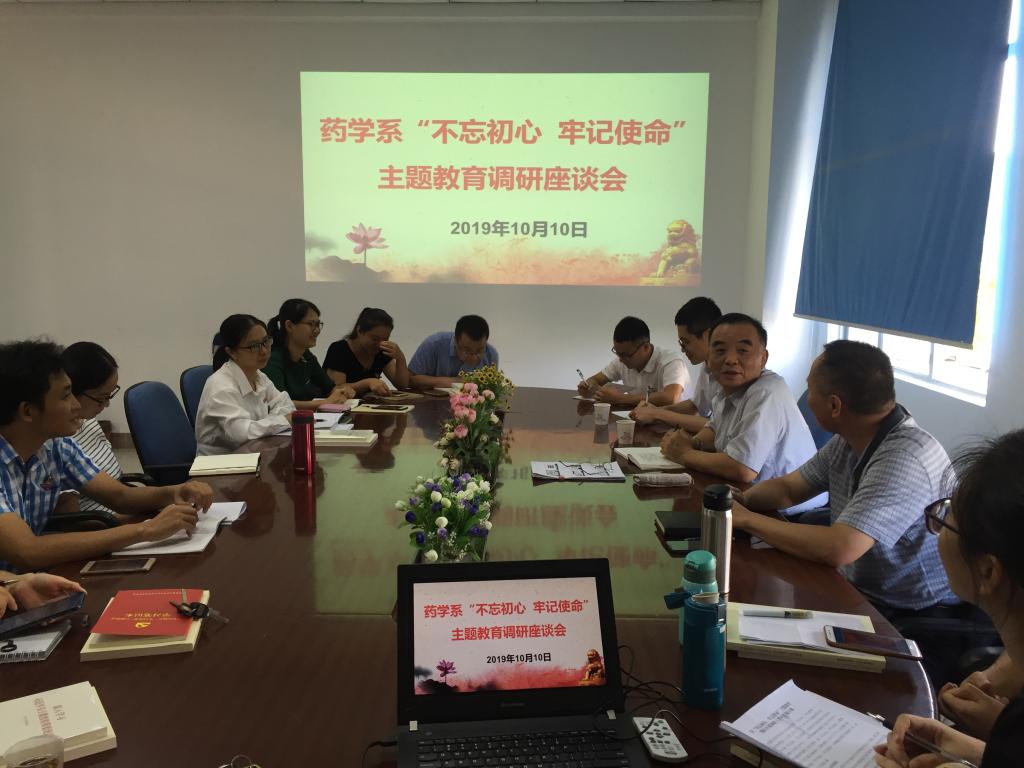 20191010日,學(xué)院紀(jì)委書(shū)記游鋒在藥學(xué)系召開(kāi)主題教育專(zhuān)題調(diào)研座談會(huì)。藥學(xué)系黨總支書(shū)記鄭力宏主持會(huì)議,紀(jì)檢監(jiān)察室楊金城、藥學(xué)系黨總支委員、支部書(shū)記、教研室主任、輔導(dǎo)員及教師代表參加座談會(huì)。