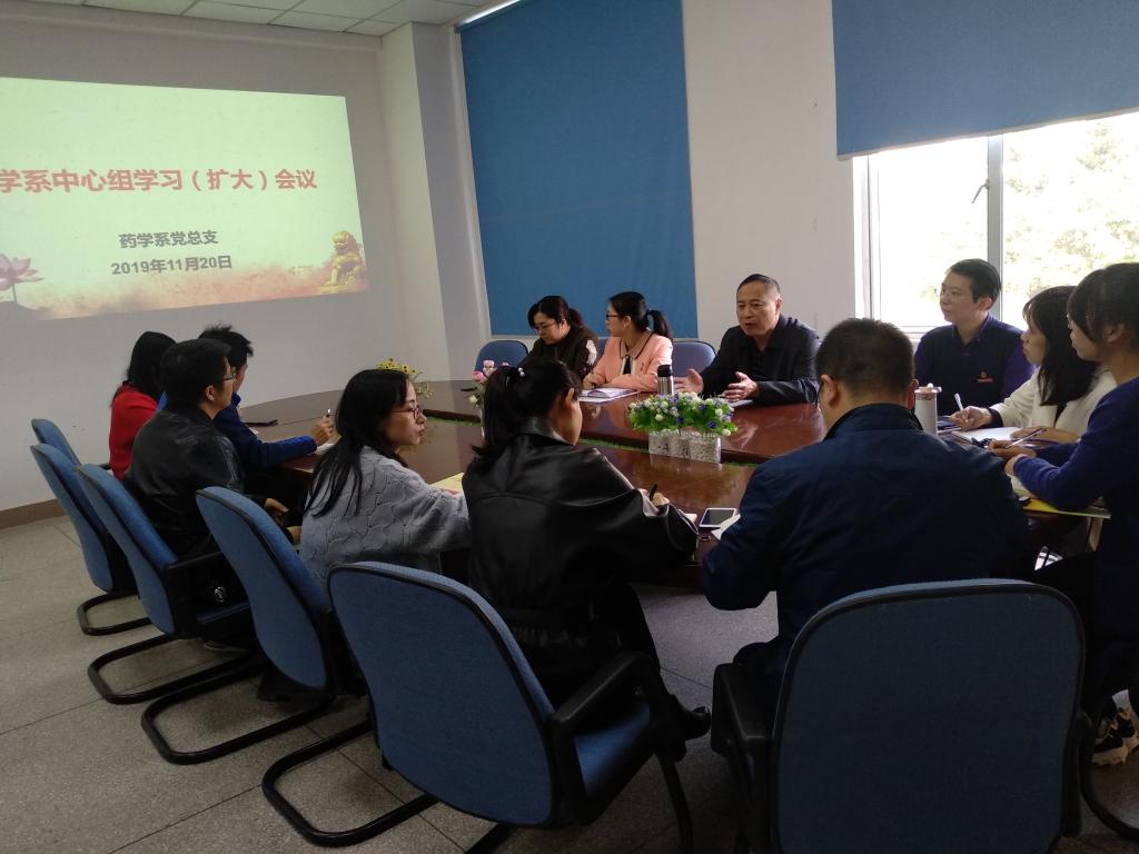2019年11月20日,藥學系中心組(擴大)于系部會議室集中學習黨的十九屆四中全會精神,會議由藥學系黨總支書記鄭力宏主持。