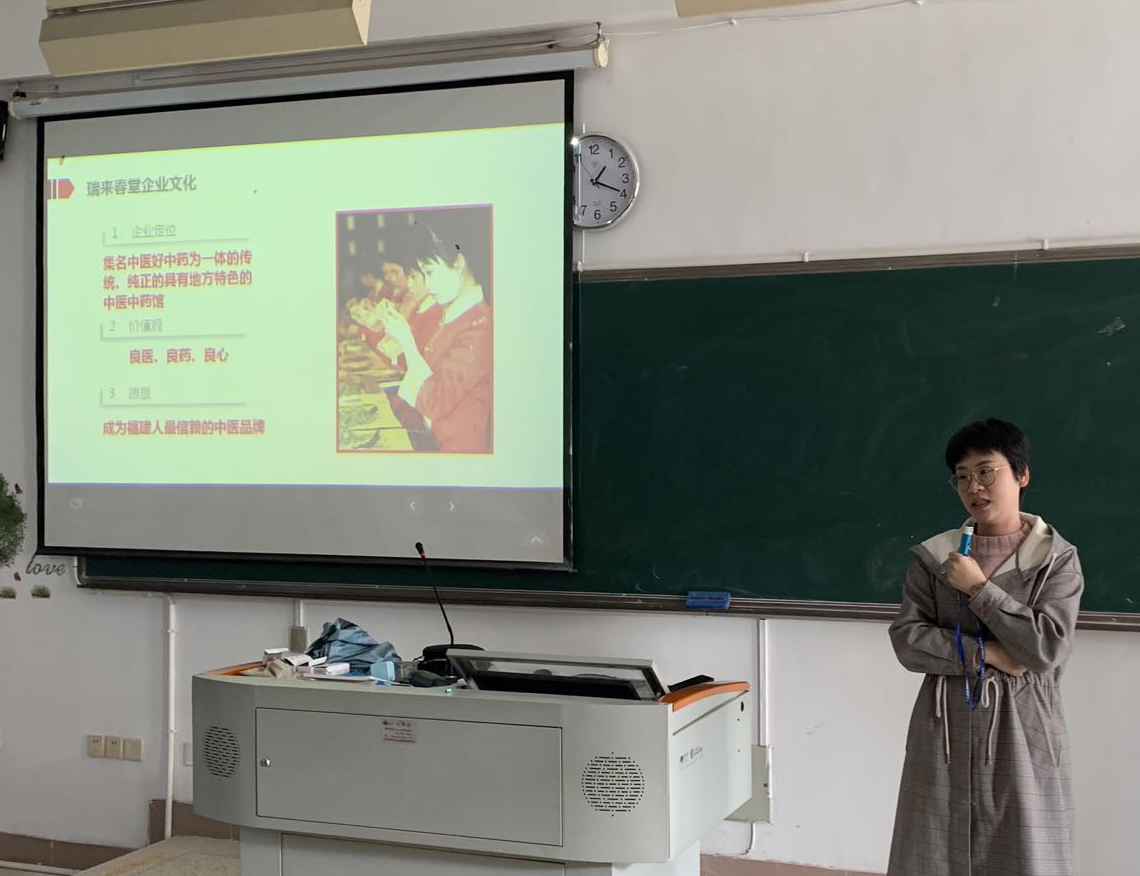 本場講座由藥學系第一黨支部書記何舒瀾老師主講,講座詳細介紹了“中國北京同仁堂(集團)有限責任公司”與“福建瑞來春健康管理有限公司”兩家知名中藥企業(yè)的歷史與文化理念。北京同仁堂“炮制雖繁必不敢省人工,品味雖貴必不敢減物力”的經(jīng)營理念,“修合無人見,存心有天知”的自律意識,“同修仁德,濟世養(yǎng)生”的社會責任都讓學生為之觸動,而瑞來春堂“集名中醫(yī)好中藥為一體的傳統(tǒng)、純正的具有地方特色的中醫(yī)中藥館”的企業(yè)定位,“良醫(yī)、良藥、良心”的價值觀,“成為福建人最信賴的中醫(yī)品牌”的愿景也讓學生感到震撼。講座后學生與林玲老師進行了充分互動,林玲老師的中肯意見得到了學生們的積極回應,整個會場洋溢著濃濃的文化氣息。