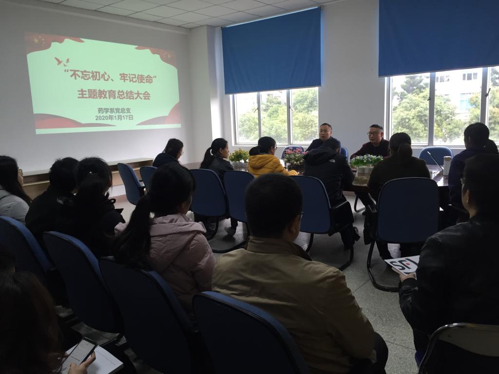 會上,鄭力宏書記代表藥學(xué)系黨總支作“不忘初心、牢記使命”主題教育總結(jié)。他指出自“不忘初心、牢記使命”主題教育開展以來,藥學(xué)系黨總支堅持把抓好主題教育作為履行黨建主體責(zé)任的重要任務(wù),精心研究部署,扎實組織實施,把學(xué)習(xí)教育、調(diào)查研究、檢視問題、整改落實貫穿主題教育全過程。他從五個方面闡述藥學(xué)系主題教育開展情況:一是加強組織領(lǐng)導(dǎo),強化頂層設(shè)計;二是聚焦主題學(xué)習(xí),做到學(xué)深悟透;三是結(jié)合工作實際,開展調(diào)查研究;四是自覺對表對標(biāo),深刻剖析反思;五是強化問題導(dǎo)向,狠抓整改落實。他表示,在學(xué)院第四巡回指導(dǎo)組的精心指導(dǎo)下,主題教育達到了預(yù)期目標(biāo),取得了三個方面的階段性成效:夯實了理論基礎(chǔ)、提升了黨性修養(yǎng)、務(wù)實了工作作風(fēng)。他強調(diào),下一步藥學(xué)系黨總支要以主題教育為新的起點,持續(xù)抓好理論學(xué)習(xí),在知行合一、學(xué)以致用上下功夫,推動學(xué)習(xí)貫徹習(xí)近平新時代中國特色社會主義思想往深里走、往心里走、往實里走;要堅持走群眾路線,持續(xù)推出一些更有針對性、開創(chuàng)性的工作舉措,建立聯(lián)系師生長效機制;要進一步改進工作作風(fēng),發(fā)揚創(chuàng)新精神。