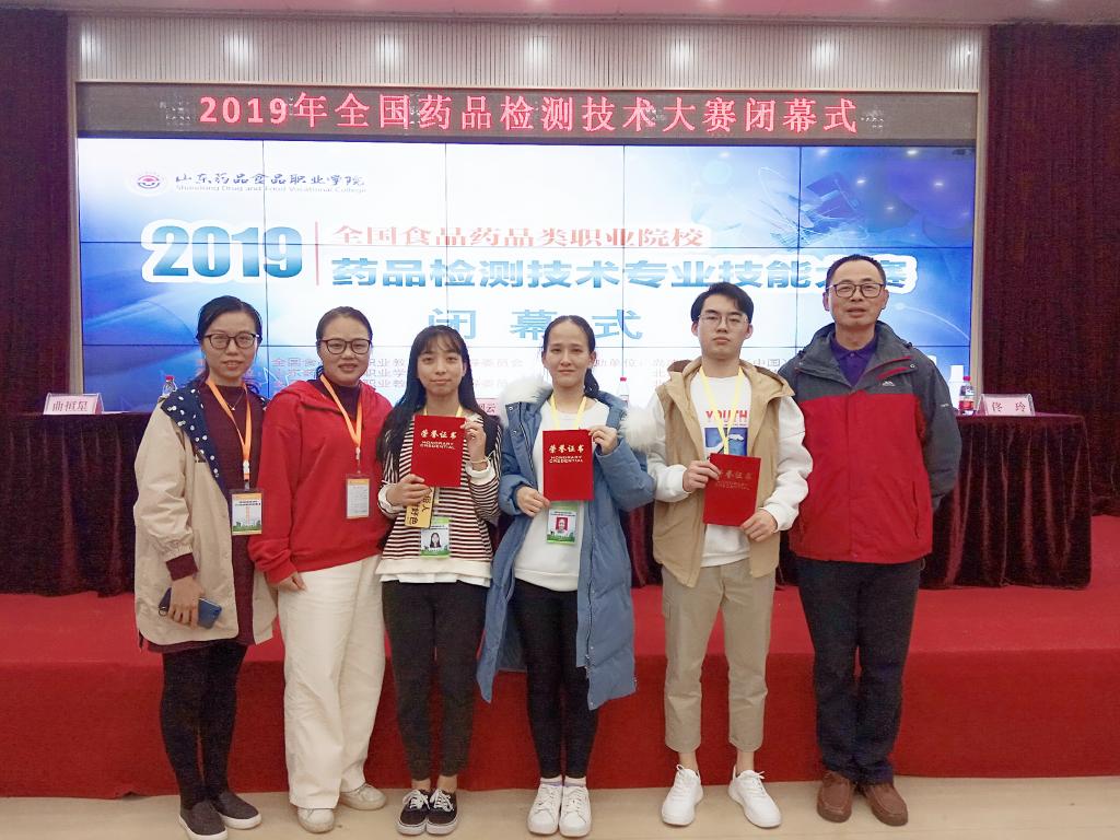 2019年全國食品藥品類職業(yè)院?!八幤窓z測技術(shù)”技能大賽于11月1至3日在山東藥品食品職業(yè)學(xué)院舉行。藥學(xué)系黃智偉、陳雪萍、吳婉婷三名同學(xué)組成的學(xué)生團隊榮獲團體二等獎的好成績,藥學(xué)系肖健副主任(主持工作)、指導(dǎo)老師陳詠、葉雅沁帶隊前往。