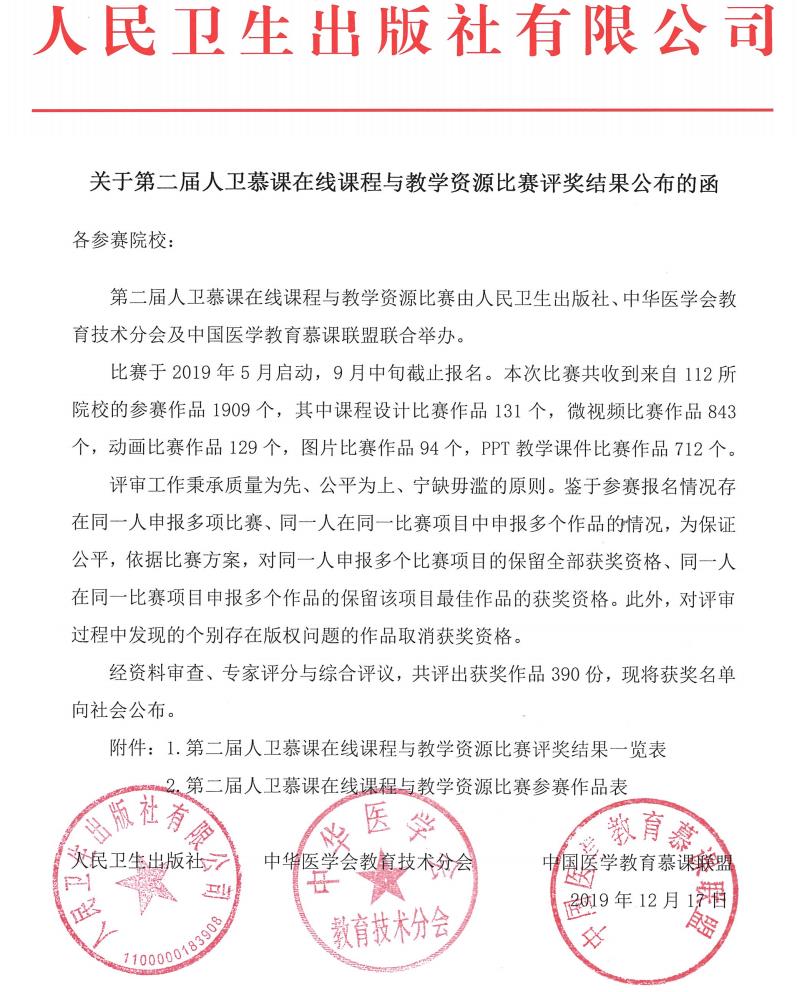 藥學(xué)系教師參加第二屆人衛(wèi)慕課在線課程與教學(xué)資源比賽獲獎(jiǎng)
