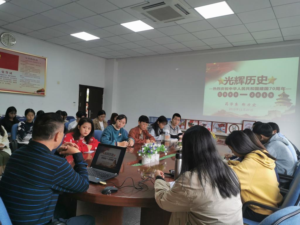為熱烈慶祝中華人民共和國(guó)成立70周年,2019年11月28日,藥學(xué)系黨總支鄭力宏書記于我系會(huì)議室以“光輝歷史”為主題,為18級(jí)團(tuán)學(xué)干部講授形勢(shì)與政策課。
