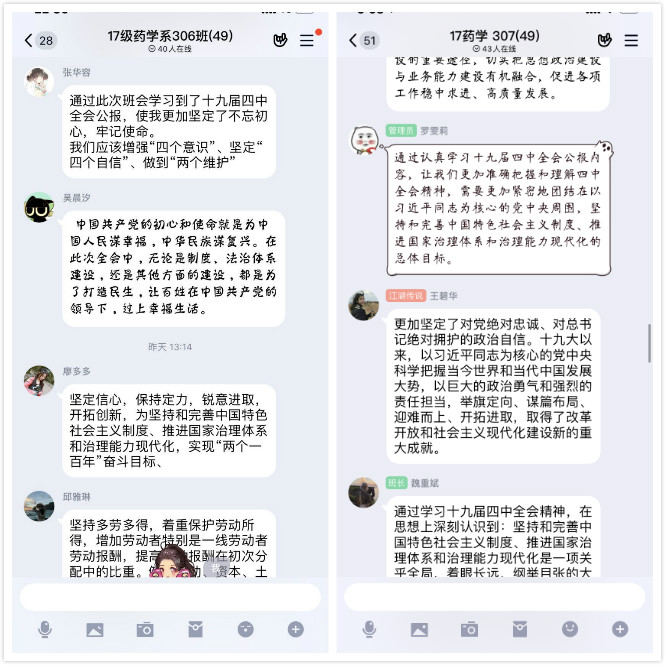 藥學(xué)系舉辦“學(xué)習(xí)十九屆四中全會會議精神”線上特別主題團(tuán)日活動