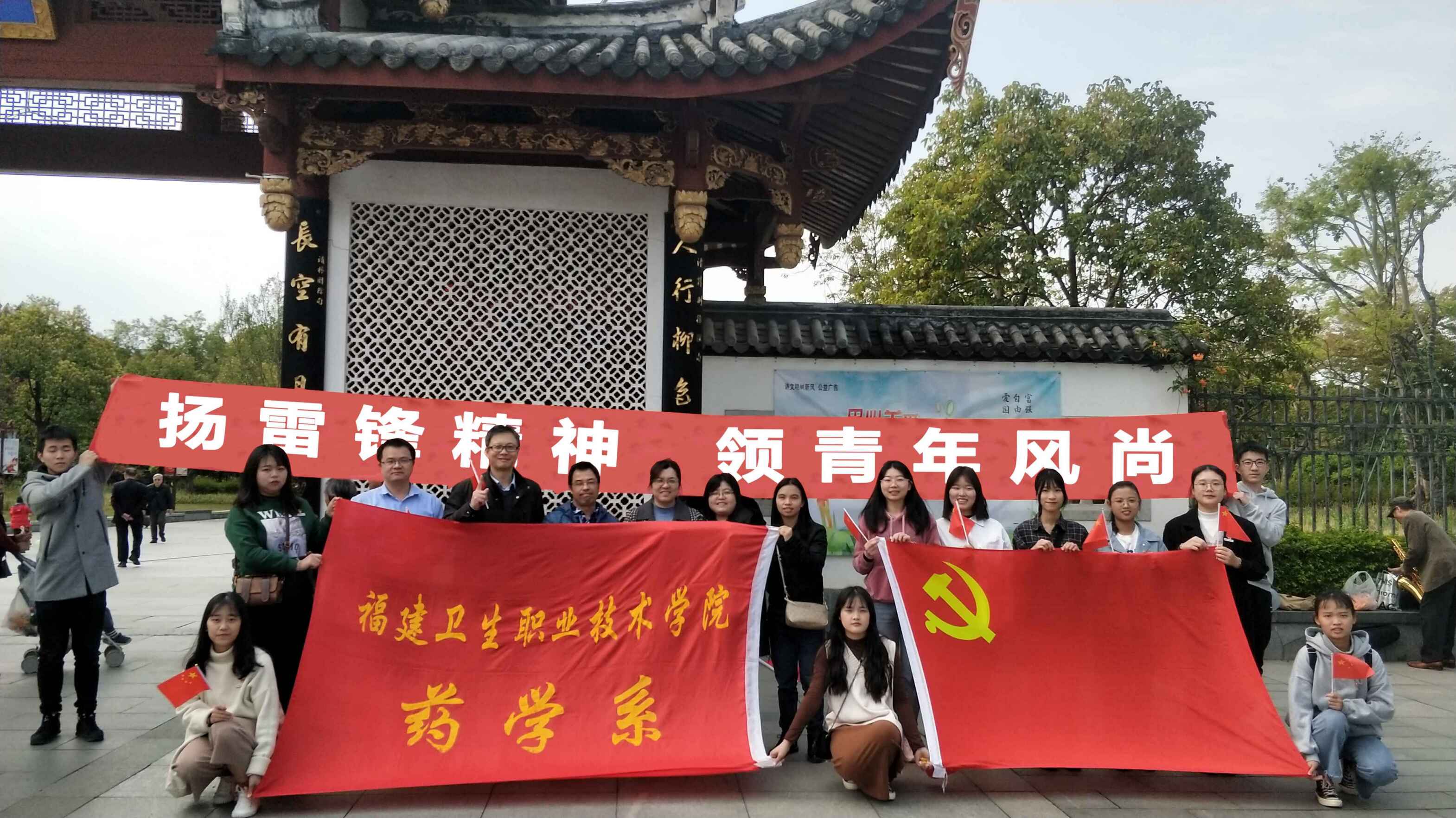 為弘揚雷鋒精神,更好地傳播社會主義核心價值觀,藥學(xué)系第二黨支部于2019年3月16日在左海公園與共建社區(qū)一起開展“揚雷鋒精神,領(lǐng)青年風(fēng)尚”的主題黨日活動。活動中,黨員同志們與社區(qū)居民共唱《我和我的祖國》,抒發(fā)愛國情懷,飽含的深情引起過往群眾強烈共鳴,紛紛加入合唱的隊伍,將本次活動推向高潮。
