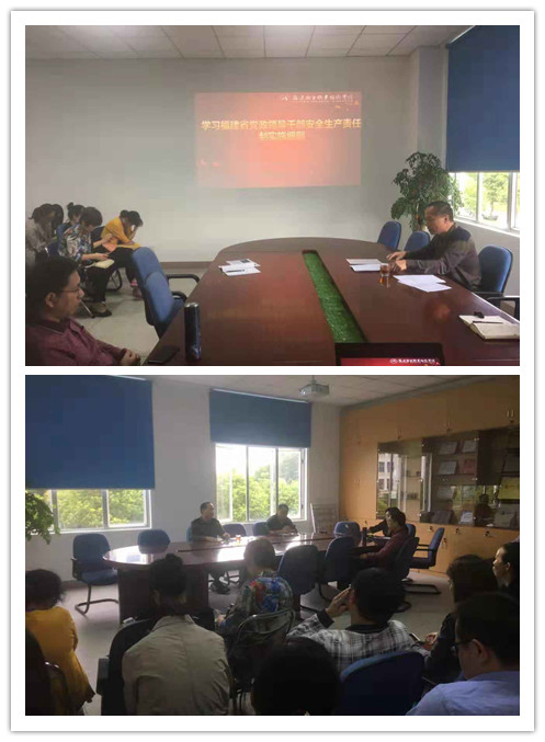 10月11日下午,藥學(xué)系黨總支組織全系教職工學(xué)習(xí)《福建省黨政領(lǐng)導(dǎo)干部安全生產(chǎn)責(zé)任制實施細(xì)則》。會議由總支書記鄭力宏主持。