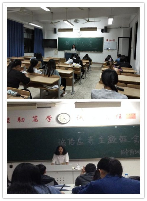 為進(jìn)一步嚴(yán)肅考試紀(jì)律,培養(yǎng)同學(xué)們樹(shù)立誠(chéng)信應(yīng)考,誠(chéng)實(shí)做人的理念,弘揚(yáng)中華民族的傳統(tǒng)美德。藥學(xué)系學(xué)習(xí)部組織各班級(jí)開(kāi)展“誠(chéng)信應(yīng)考,杜絕舞弊”的主題教育活動(dòng)。