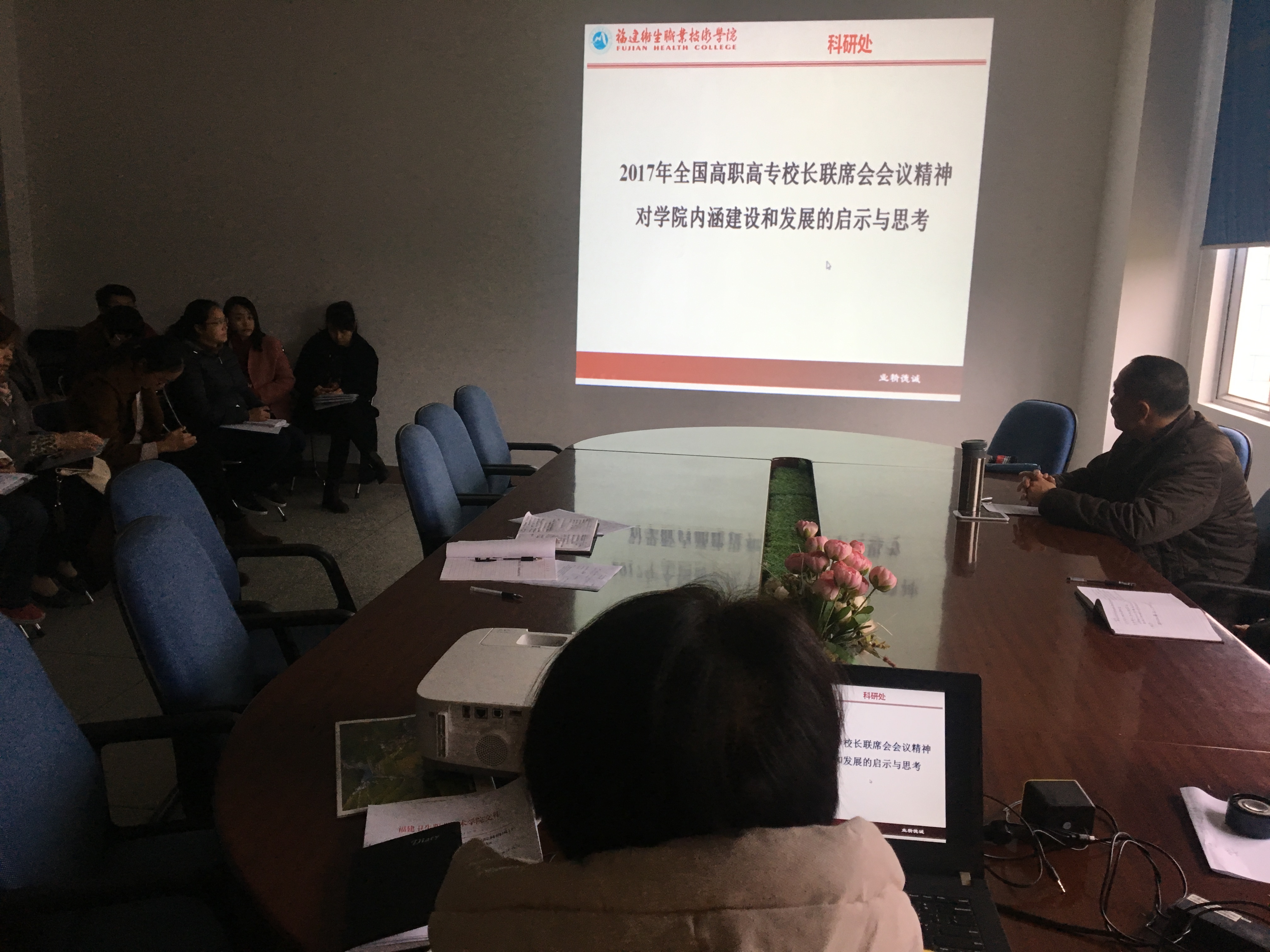 為進(jìn)一步推動高職高專教育健康穩(wěn)步發(fā)展,交流全國高職高專院校在質(zhì)量提升、創(chuàng)新發(fā)展,以及服務(wù)國家戰(zhàn)略中所取得的經(jīng)驗(yàn)與成果,共同探討新階段高等職業(yè)教育的發(fā)展路徑,全國高職高專校長聯(lián)席會議2017年年會于日前在江蘇常州順利召開,我院科研處朱扶蓉處長作為代表出席了會議。12月14日下午,為響應(yīng)黨的十九大后新時代對高職教育的新要求,我系邀請朱處長到我系做《2017年全國高職高專校長聯(lián)席會會議精神對學(xué)院內(nèi)涵建設(shè)和發(fā)展的啟示與思考》講座,藥學(xué)系全體教職工參加本次學(xué)習(xí)。